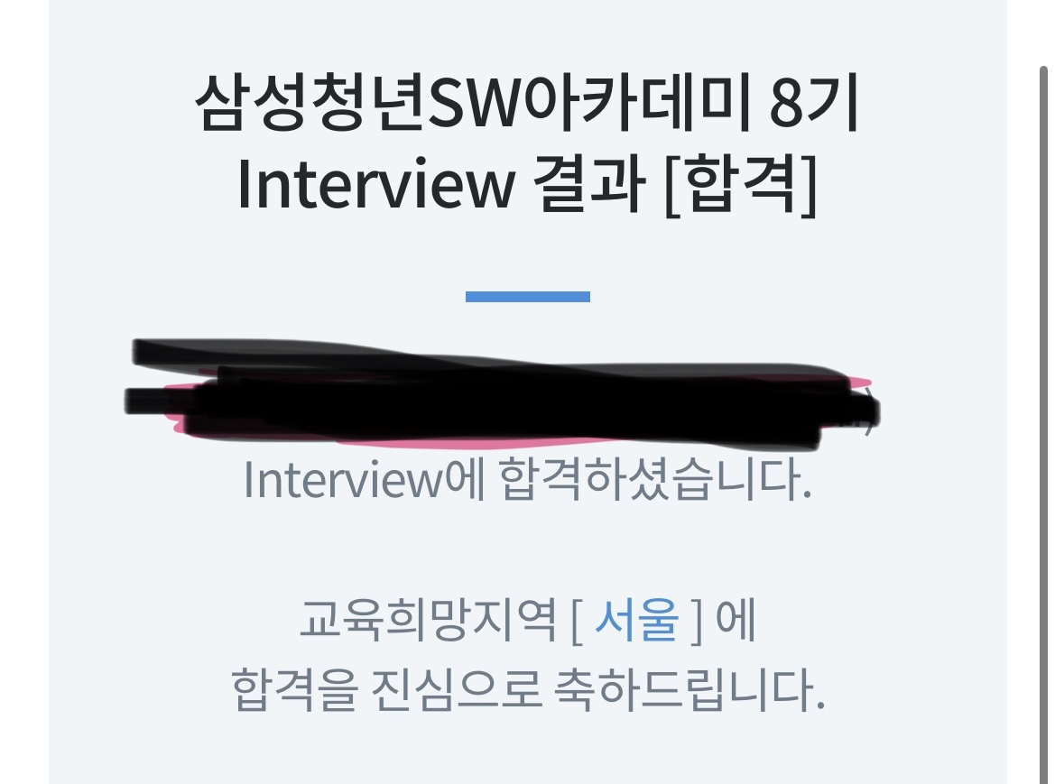 마지막으로 제가 싸피 준비하면서 싸피 서울캠은 경쟁률 쎄서 들어가기 어렵다는 말을 많이 들었고, 그래서 좀 불안하기도 하고 기대도 안하고 있었는데요, 저같은 코린이🐣도 붙었으니 다들 자신감을 가지고 꼼꼼히 준비해서 도전하신다면 좋은 결과 있으실 것 같습니다!
